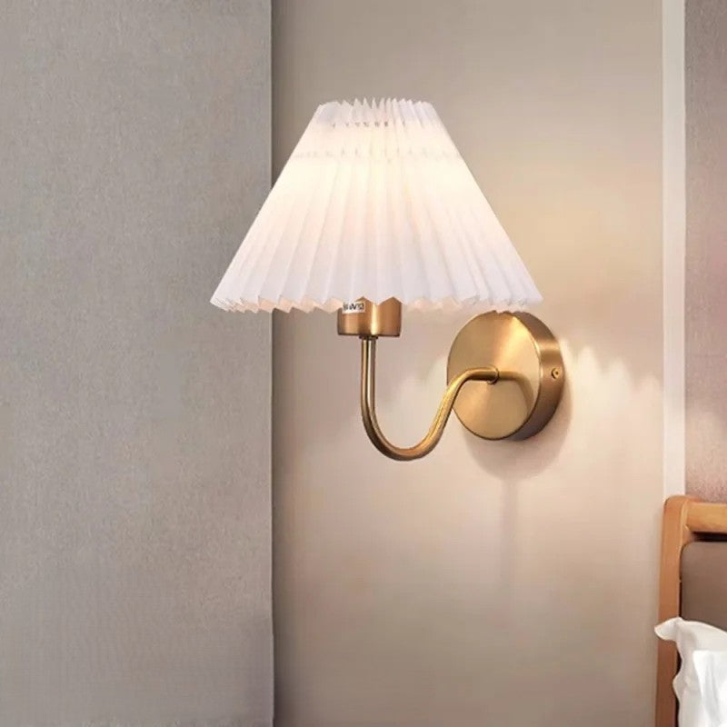 tonivar Nordic Retro Pleated Wall Lamp - Fan-Shaped Fabric Bedside Sconce